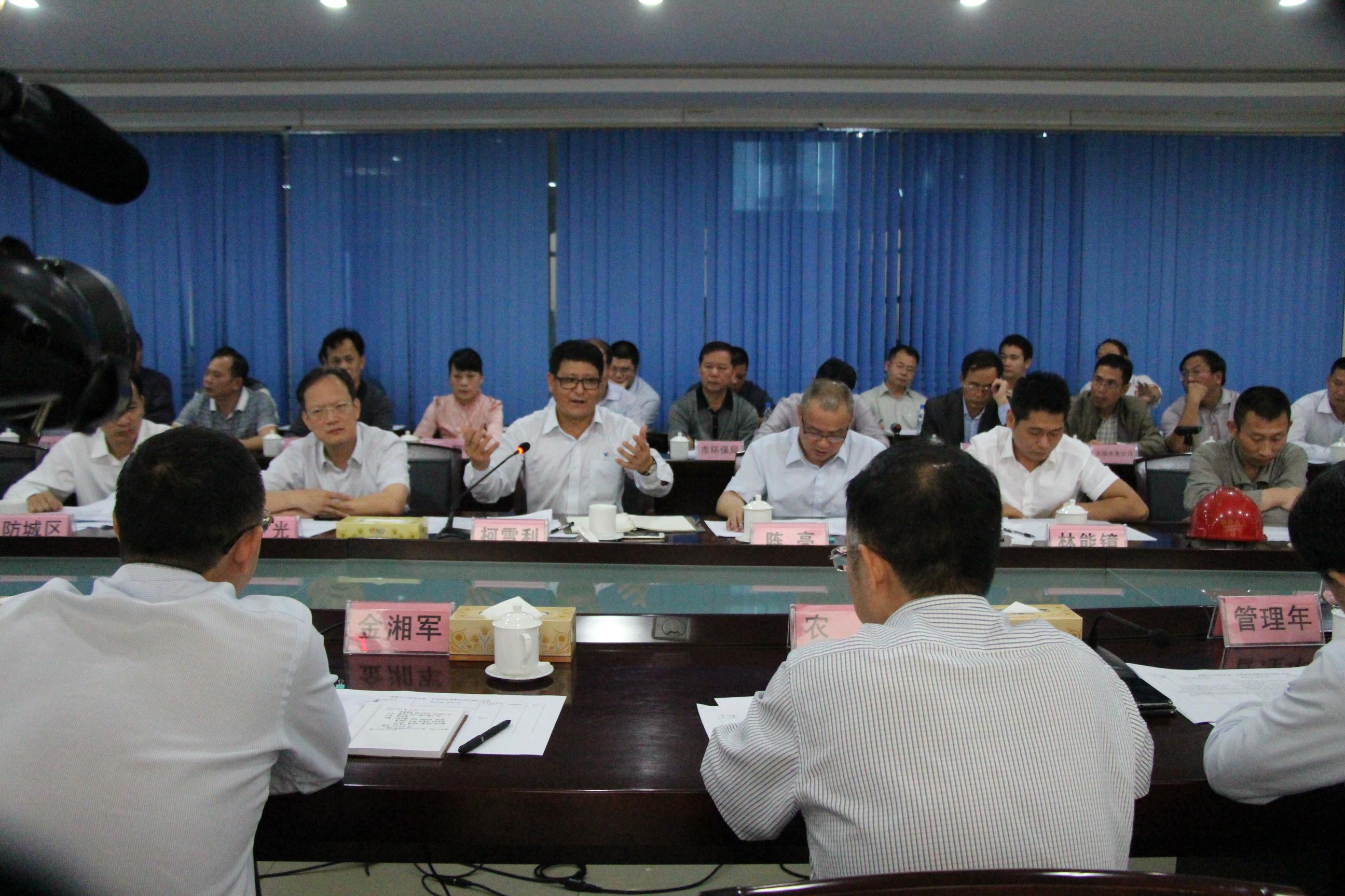 1月16日下午,防城港市委常委班子“换位沉底”现场办公会在易游中国公司三楼会议室召开,市委书记金湘军、市长何朝建等市领导以及市县区相关职能部门参加会议,我公司总经理柯雪利、常务副总经理陈亮等领导同时出席。会上,就我公司提请市委、市政府协调解决的问题,以及市直职能部门提出我公司需解决的问题,双方展开交流与协商,最终,经过市委领导的组织协调,落实了相关问题的解决方案,并明确了责任单位、责任人以及解决时间,为我公司进一步的稳定发展提供了有力保障。