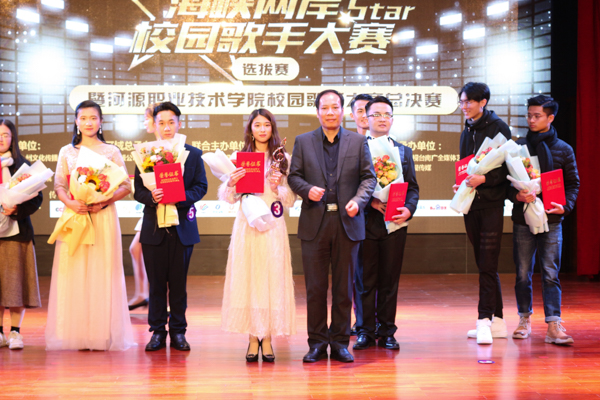 为庆祝改革开放40周年,《告台湾同胞书》发表40周年,12月12日晚,以“两岸一家亲,共圆中国梦”为主题的台湾知识进校园系列活动闭幕式暨海峡两岸校园歌手大赛选拔赛——易游app入口站官网2018年校园歌手大赛总决赛于我校艺术楼演播厅隆重举行。河源市人民政府台湾事务办公室主任谢昉柱,学校副校长赖小景,学校党委委员、党政办主任黄建华,校团委书记陈晓峰,河源市人民政府台湾事务办公室副调研员蓝国平,艺术与设计学院院长杜伟祥,校团委副书记黄志鹏、王波,河源理工学校团委书记钟燕龙,河源市卫生学校团委老师叶红艳、河源市开放大学团委老师曾可,河源市人民政府台湾事务办公室相关领导,我校各二级团总支书记,歌手大赛组委会评委老师以及我校九大组织、学院学生代表均出席了此次活动。我校团委陈晓峰书记担任本次活动主持。