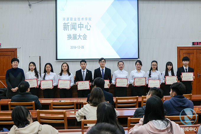 12月25日晚,我校新闻中心第十四届学生干部换届大会于行政楼c108如期举行。我校党委委员、党委宣传部部长赖新优、党委宣传部办公室主任张素芬、教师黄舒,各大学生组织代表以及新闻中心全体成员参加了本次换届受聘大会,大会由邬占乾老师主持。