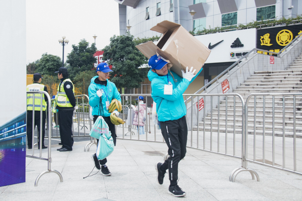 志愿者忙碌的身影