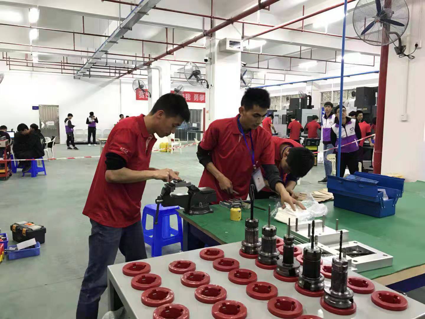 2018-2019年度广东省职业院校学生专业技能大赛“模具数字化设计与制造工艺”赛项由广东省教育厅主办,来自全省26个参赛队的78名选手参加比赛。参赛选手须在规定的时间内完成整套注塑模具设计、主要零部件的加工、模具装配及试模等工作任务。比赛分三个阶段进行:第一阶段3.5小时,主要进行模具设计、模流分析与零件编程;第二阶段2.5小时,主要是运用数控机床进行模具零件加工;第三个阶段1.5小时,主要进行模具零件的抛光、装配及模具试模。