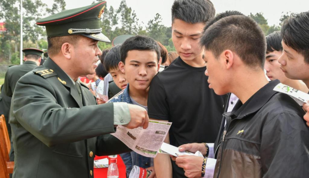 仪式结束后,学生们兴致勃勃地参观了征兵宣传专栏,并现场向工作人员咨询了应征报名的相关政策。