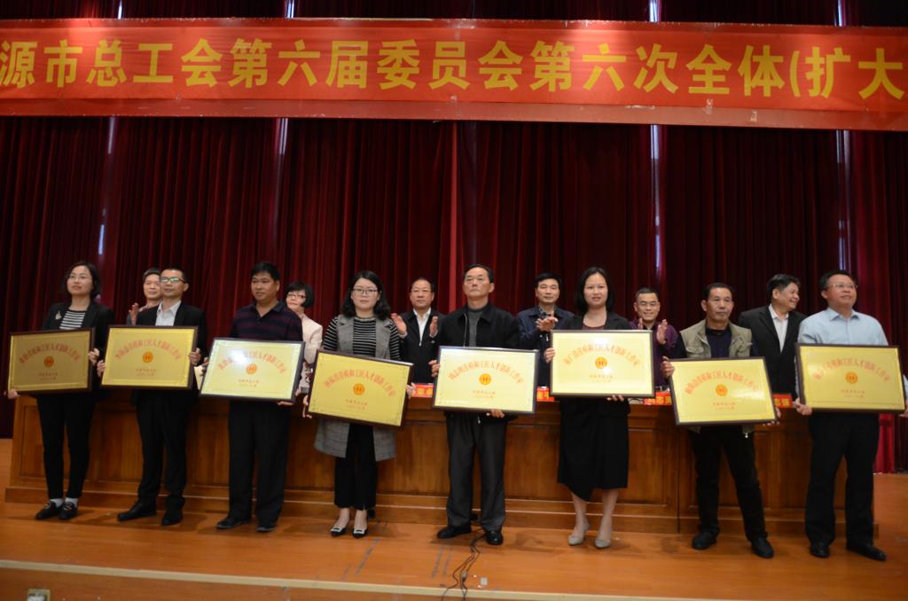 4月2日,我市召开总工会六届六次全委(扩大)会议,总结2018年全市工会工作并部署2019年主要工作任务。市人大常委会副主任、市总工会主席陈荣卓代表市总工会第六届常委会作工作报告,市委副秘书长何建平代表市委出席会议并讲话。会上,我校作为2018年度河源市工会工作先进基层单位受到表彰,同时,我校戴春平创新工作室、徐艳创新工作室得到正式命名并授牌。