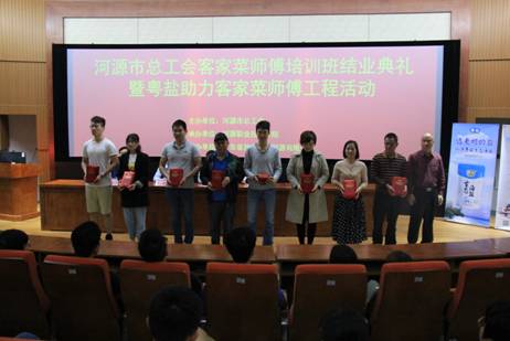 4月19日,客家菜师傅培训班结业典礼暨粤盐助力“客家菜师傅工程”活动在我校举行,副校长王小宁,粤盐集团河源有限公司执行董事魏辉泉同志出席活动并签署指定用盐协议,进一步深入推进客家菜师傅培训工程的开展,助力客家菜香飘大湾区。