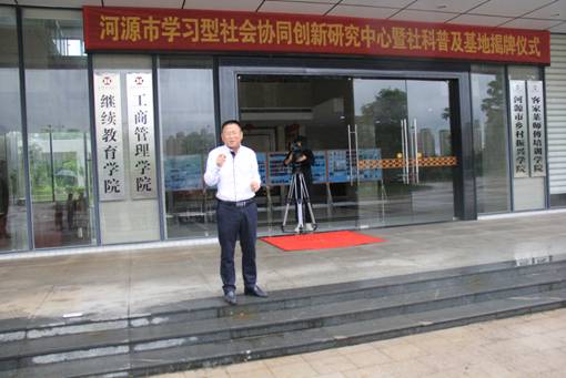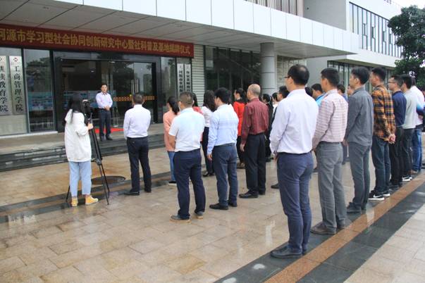 4月19日,河源市学习型社会协同创新研究中心暨河源市人文社会科学普及基地揭牌仪式在我校举行,这是全省首家地市政校协同的学习型社会创新研究中心。市社科联负责人蒋武生同志、我校副校长王小宁同志出席揭牌仪式,继续教育学院全体教职工参加揭牌仪式。