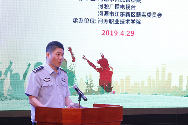 为深入学习领会、贯彻落实习近平总书记关于禁毒工作的系列重要指示精神,切实提高青少年学生识毒、防毒、拒毒的意识和能力。4月29日晚,河源市人民检察院联合易游app入口站官网、河源市广播电视台、河源市江东新区禁毒委员会于我校艺术楼演播厅隆重举办以“珍爱生命 远离毒品”为主题的法治宣传教育活动。我校党委副书记、纪委书记叶国英,河源市人民检察院党组成员、副检察长陈润泽,河源广播电视台副台长廖晓棠,河源市禁毒委员会办公室专职副主任、河源市公安局禁毒支队支队长叶新添,江东新区党委委员、管委会副主任、禁毒委副主任、河源市公安局江东分局局长袁作平,河源市人民检察院检察官黄莉,我校团委书记陈晓峰,我校团委副书记黄志鹏,以及河职院各二级学院团总支书记,学生代表参加了本次活动。活动由陈晓峰书记担任主持。