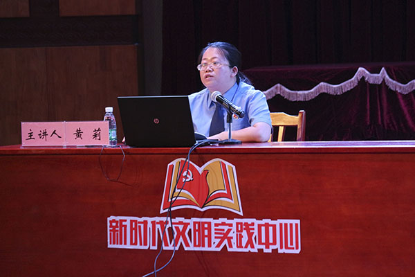 紧接着,黄莉检察官以《珍爱生命,远离毒品》为题给全体人员授课。在课上,黄莉检察官首先以“什么是毒品”“法律禁止什么样的涉毒行为”“你了解毒品的‘危害’吗”三个问题展开课程,并通过结合PPT、小视频,以图文并茂的方式,为全体人员围绕毒品的“昨天与今天”、“模样”、“距离”三个内容进行阐述。其中,黄莉检察官用多个毒品犯罪事例和法律条例直观地向全体师生们宣传毒品的危害性和非法性。课程最后,黄莉检察官表示,广大青少年要远离危险的娱乐场所;坚决抵制毒品,对毒品说“不”;不轻信他人;不听信鼓吹并树立正确的价值观、人生观。