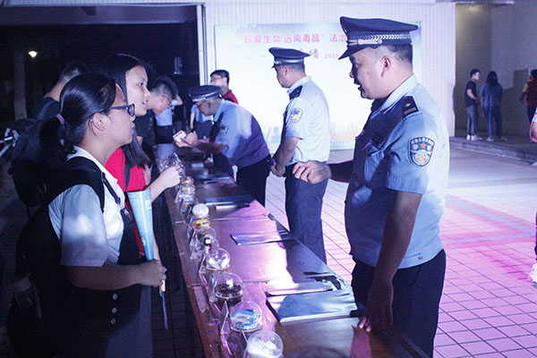 授课后,学生会主席李幕史同学上台进行庄严的禁毒领誓。随后,领导老师和师生代表们共同在禁毒宣传签名墙KT板上签名并有序参观毒品仿真品。活动在全体人员的合影留念中落下帷幕。