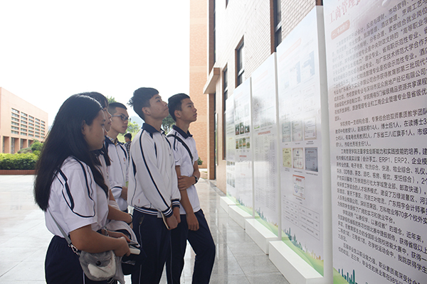 为学习贯彻《国务院关于加快发展现代职业教育的决定》和《国家职业教育改革实施方案》精神,积极宣传习近平总书记关于“德技并修、工学结合”的重要指示精神,宣传全国教育大会“德智体美劳”的教育方针,5月7日,我校于图书馆中厅举行主题为“迎祖国七十华诞 展职教时代风采”河职院2019年职业教育周——教学成果展活动,我校校长陈德清,副校长陈农心,校团委干部,师生代表,广东生态工程学院师生代表以及河源技工学校学生代表均出席了此次活动。