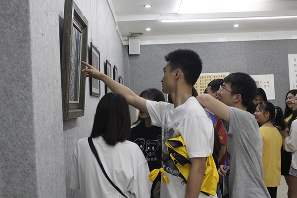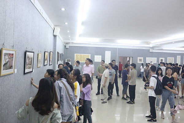我校学生观看绘画作品展