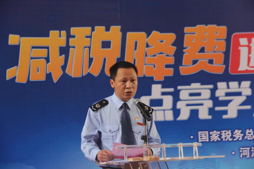江东新区税务局钟阵锋副局长在讲话中阐述了税收对国家的重要意义,号召大家行动起来,学习税法知识,积极了解国家减税降费最新政策。