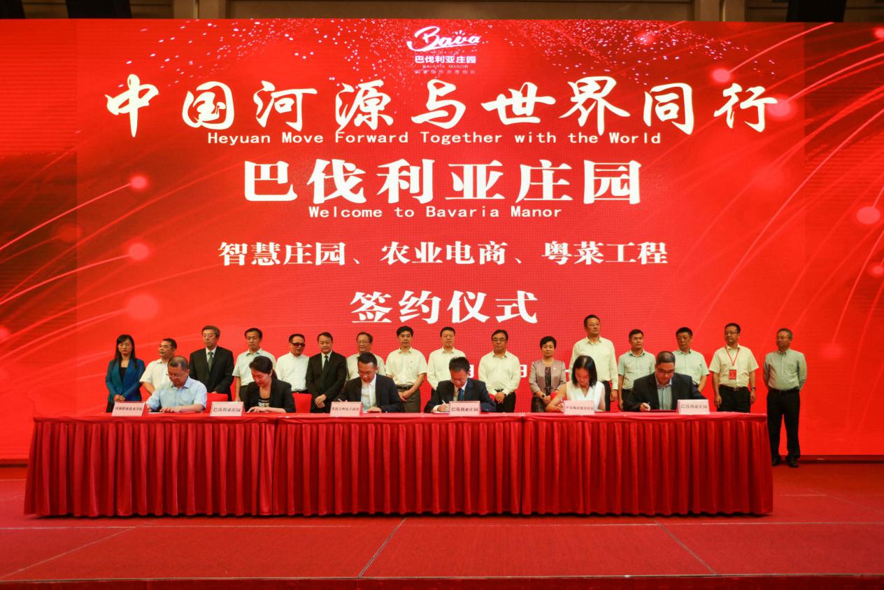 活动仪式上,工商管理学院、河职院客家菜师傅学院俞彤院长与巴伐利亚庄园签署“粤菜工程”校外实践基地。
