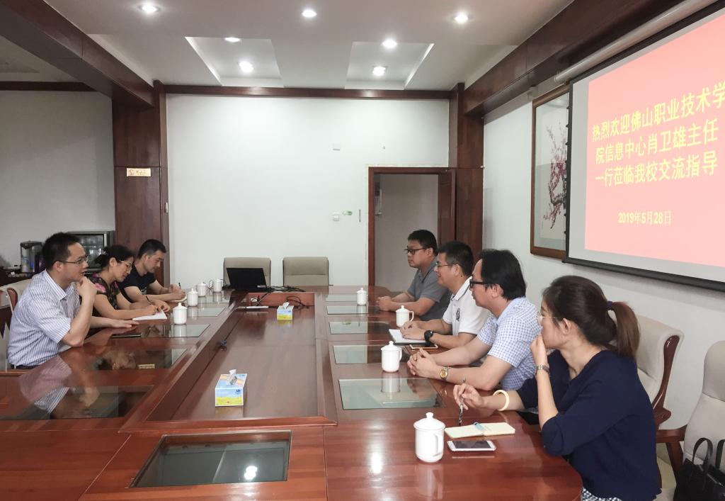 5月28日,佛山职业技术学院信息中心(图书馆)主任(馆长)肖卫雄等一行4人来我校访问交流,我校信息中心主任杨文等进行了热情接待。