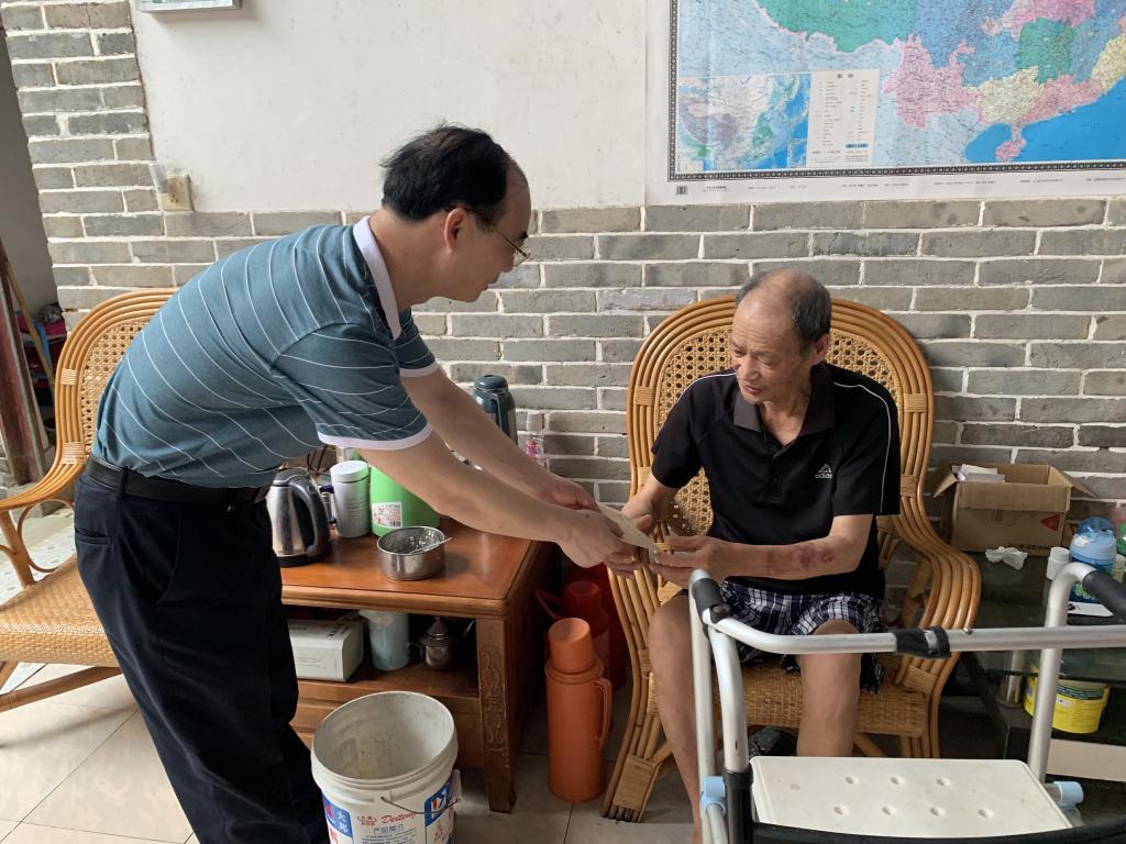 随后,赖小景副校长深入到下石村老党员、困难党员家中进行慰问。赖小景副校长亲切地与每一位老党员、困难党员进行交谈,了解他们的党龄、生活情况和身体状况等,表达了河职院对下石村老党员、困难党员的关心和关怀,致以节日的问候并送上慰问金。受到慰问的党员们由衷感谢河职院对他们的帮助和关爱。