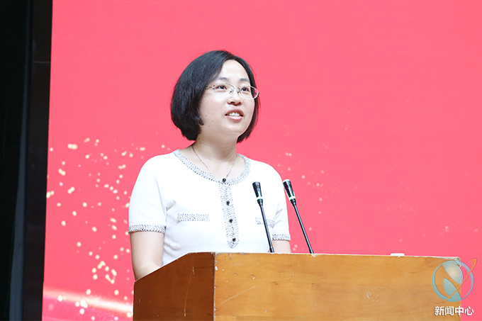 博士徐艳老师作为学校优秀教师代表发言,她回顾了自己大学老师对自己谆谆教诲的情景,语重心长地指出,离开学校并不是学习的结束,而是学习的开始,她勉励毕业生们要持之以恒地自我学习,做一个善于学习的人,做一个知行合一的人。