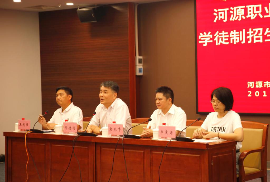 为进一步贯彻落实省教育厅关于开展2019年第二批省高职教育现代学徒制试点申报工作的通知精神,做好2019年现代学徒制招生宣传工作,7月4日上午,陈德清校长率教务处、各学院相关负责人赴市高新区管委会,召开现代学徒制招生政策宣讲会,会议由河源市高新区管委会组织,中兴通讯、汉能光伏、西可电子、农夫山泉、龙记金属等50余家企业代表参加了宣讲会。市高新区社会事务局局长王越强主持了会议。