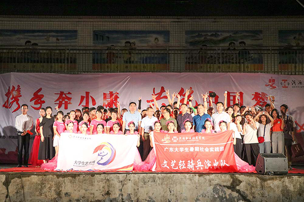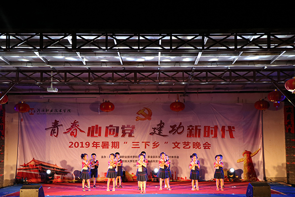 7月21、22日晚,我校分别于紫金县凤安镇下石村文化广场及龙川县新田镇中学举行2019年暑期“三下乡”社会实践活动文艺晚会。新田镇党委书记骆志全,镇长刁洪平,人大主席王汉华,紫金县凤安镇武装部部长张奕文,工商管理学院院长俞彤,我校团委书记陈晓峰,校团委副书记黄志鹏,我校“三下乡”社会实践活动带队老师谢国栋等领导分别出席了本次晚会。此外,下石村村干部,下石村村民,下石小学学生,新田镇的父老乡亲及我校下石村“三下乡”志愿者、工商学院“三下乡”社会实践团全体志愿也一同观看了本次晚会。