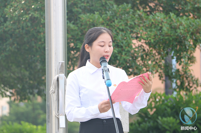 庄严的升旗仪式结束后,来自人文学院18语教2班的林晓旋作为学生代表发言。她表示,在过去的一年里收获颇丰,不仅参加了学校举办的“青马工程”培训班及暑期“三下乡”社会实践活动,还在“三下乡”活动过后,作为学生代表前往韶关学院开始为期一周的广东大学生“青马工程”培训班,获得了各项大学生知识竞答荣誉证书,参与校内外多种实践活动,丰富了自身的大学生活。她认为当代大学生要肩负起新时代新青年的使命,刻苦学习,苦练本领,勇做时代的弄潮儿,在逐梦路上不懈奋斗。