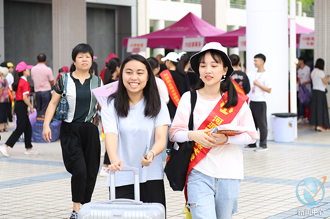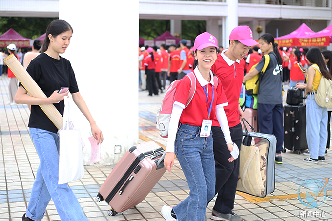 为了让新生可以更加方便、快捷地完成注册入学,我校在校外的河源市火车站、新城客运站等迎新报到点设立了接站志愿者队伍并且安排车辆接送新生到校,在校园内设立了新生引导志愿者队伍,热情积极的帮助到校新生提行李、带路、引导新生完成报到工作及入学事务;还设立了校内咨询服务站给新生提供咨询服务,为新生和家长担当校园导游,耐心地为新生以及家长答疑解惑,为新生介绍学校的环境及相关情况,帮助新生尽快了解和适应学校环境;在学校道路设立了校外车辆引导志愿者队伍协助保卫人员指挥交通,引导家长的车辆出入停放。此外学校还设立了多个学生家长休息区以及行李寄放区,为新生及家长提供休息等候的场所。各个岗位的志愿者身着鲜艳的红色短袖,不辞辛苦,认真工作,志愿者们以饱满的精神状态投入到迎新工作之中。