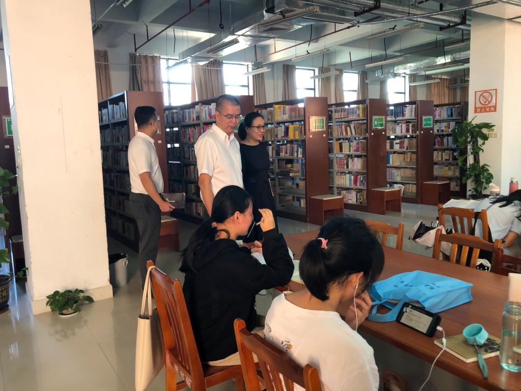 图书馆馆长杨海燕向张国勇介绍了图书馆资源、人员现状和图书馆开展的服务项目。张国勇对图书馆的建设予以肯定,认为图书馆整体规模完备,布置合理。调研会上,图书馆与会人员围绕如何加强服务师生的深入性、主动性和如何进一步提升图书馆的育人功能发表了意见。