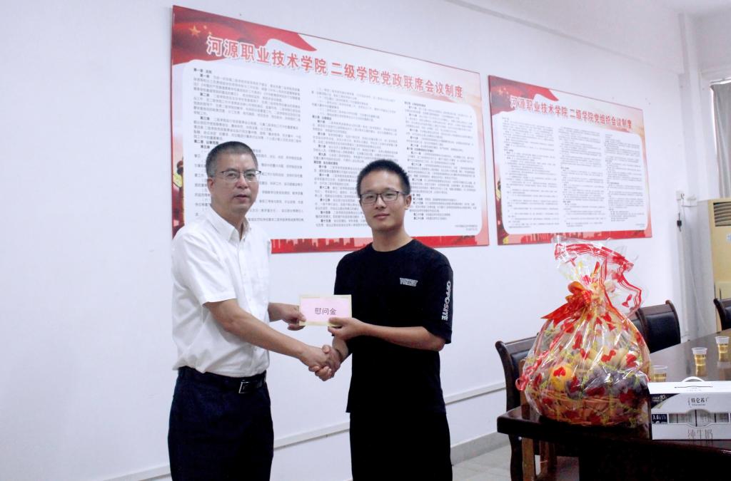 10月11日上午,副校长张国勇率领宣传部、团委、工会和艺术学院相关负责人来到艺术与设计学院,看望慰问接受干细胞采集手术后返校的黄应光,并向他送去了慰问金和慰问品。在现场交流了解情况后,张国勇副校长感动的说道“从黄应光身上,看到了我校学子对社会的责任感和使命感,感受到了“厚德”的校训精神在莘莘学子中的传承,黄应光是易游app入口站官网践行社会主义核心价值观的模范,值得我们全体师生学习。希望黄应光同学在未来的人生路上,继续闪光。”