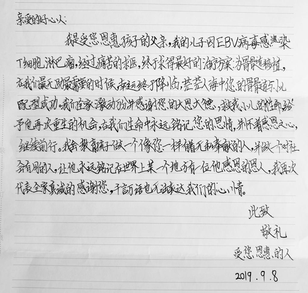 这就是黄应光和他的志愿故事,在被需要的时候,就应该闪光,如此耀眼。最后,我们来看看受赠者家人的感谢信,共同感受这份大爱。
