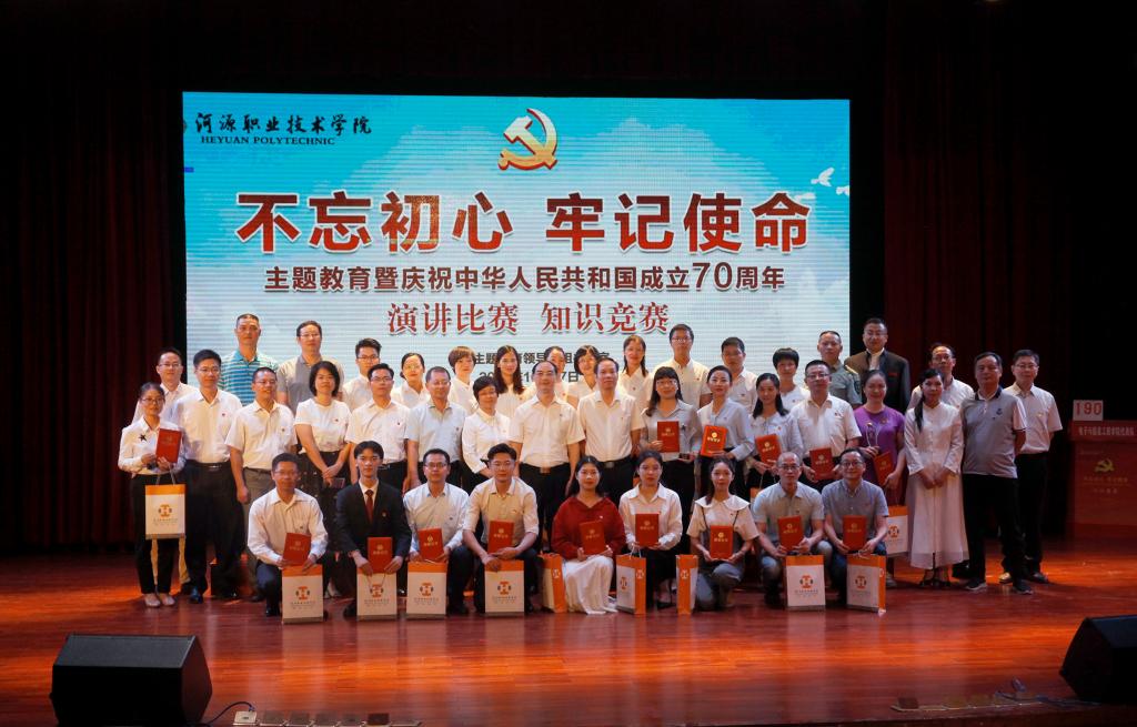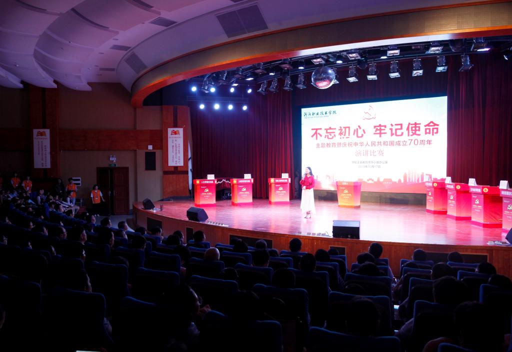 为持续推动学习贯彻习近平新时代中国特色社会主义思想和习近平总书记系列重要讲话精神,掀起主题教育学习热潮,10月17日晚,我校于艺术楼演播厅举行2019年“不忘初心、牢记使命”主题教育暨庆祝中华人民共和国成立70周年演讲比赛、知识竞赛活动。出席本次活动的有省委第十一巡回指导组领导、我校党委书记韦荣、校长陈德清等校领导及各二级学院、部门党员代表。