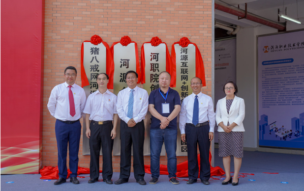 ▲揭牌嘉宾:易游app入口站官网党委委员、副校长赖小景(左二),河源江东新区党委书记孔德胜(左三),猪八戒网副总裁杜春永(右三),河源江东新区党委副书记巫志宏(右二),河源江东新区党委委员、管委会副主任疏纲(左一),猪八戒网广东大区总经理赵跃辉(右一)