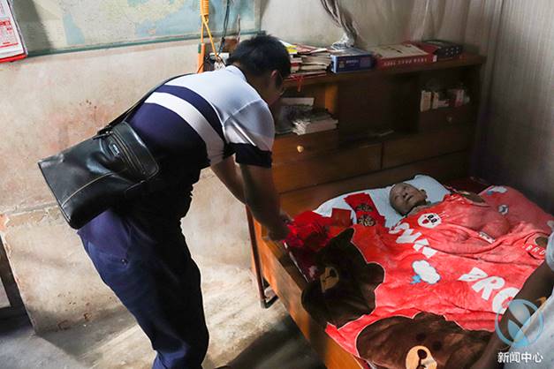 在抗美援朝老战士王亚洲老人家中,叶国英一行为老人送上慰问金和慰问品,详细了解老人的身体状况和生活情况,叮嘱老人要保重身体。