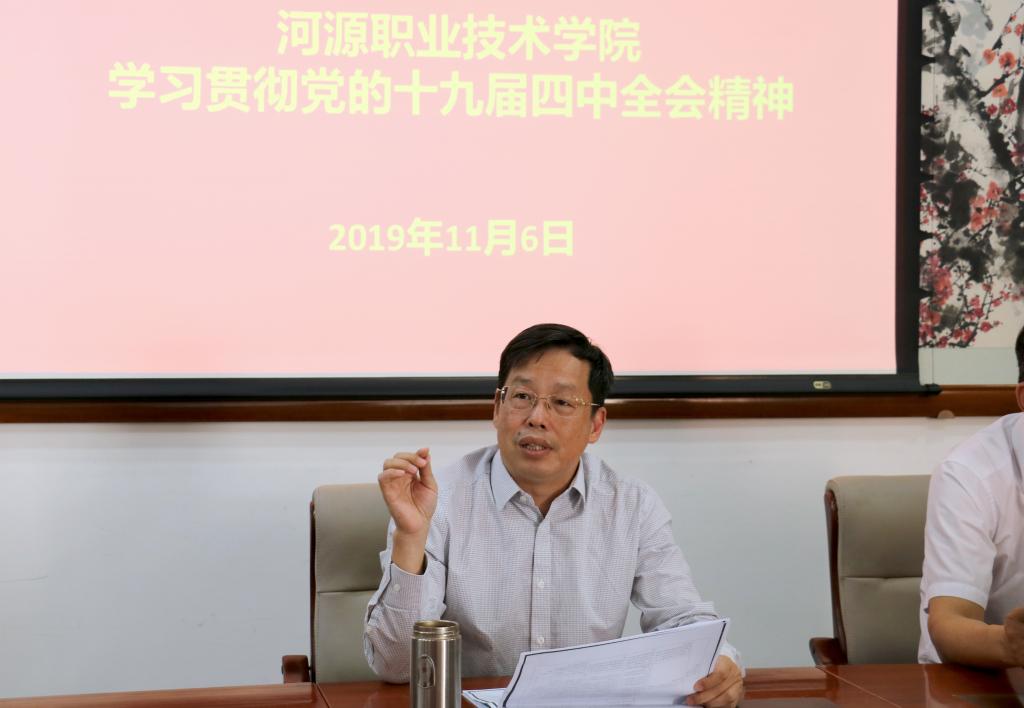 近日,我校连续召开会议,传达学习党的十九届四中全会精神。