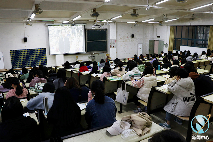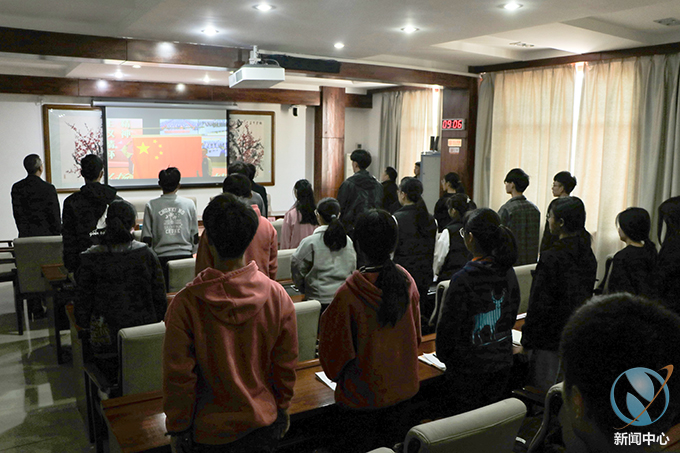 学生观看“宪法晨读”视频直播