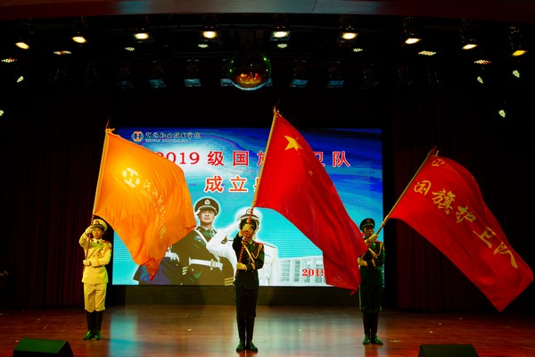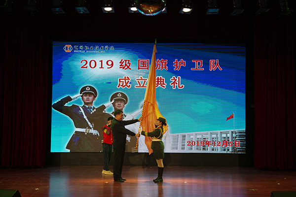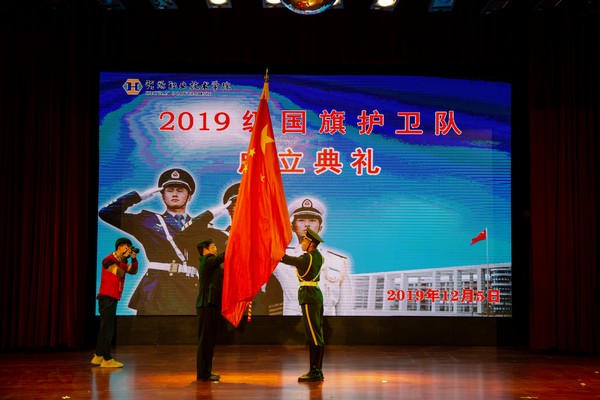 为进一步深化“不忘初心、牢记使命”主题教育,认真贯彻中共中央、国务院《新时代爱国主义教育实施纲要》的要求,激发广大师生爱国热情,加强我校国旗护卫队建设。12月5日晚,我校于艺术楼演播厅隆重举行2019级国旗护卫队成立典礼。出席此次仪式的有我校党委书记韦荣,校长陈德清,副校长赖小景、张国勇、袁光华,党委委员、宣传部部长赖新优,党委委员、组织人事处处长黄建华,党政办主任汤剑冰,团委书记陈晓峰,学校各处室负责人、团委全体老师、各二级学院团总支书记,河源技师学院国旗班、河源理工学校国旗班、广州大学附属东江中学师生代表以及各校级学生组织、社团和各二级学院学生代表出席了此次典礼。典礼由学校武装部邓伟昌处长主持。