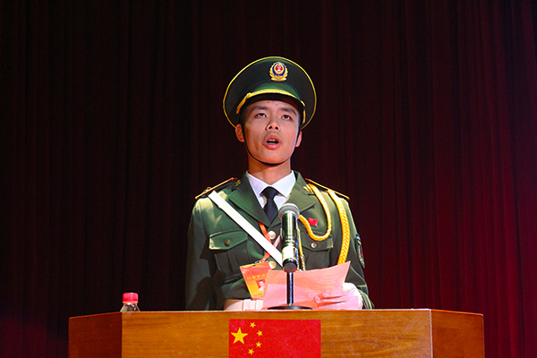 团市委副书记、我校团委书记陈晓峰宣读《关于成立河职院国旗护卫队及机构设置的决定》