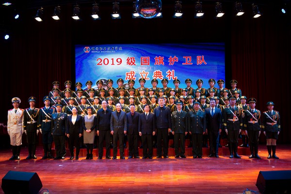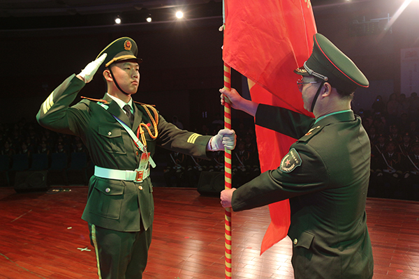 我校党委韦荣书记为国旗护卫队颁授国旗