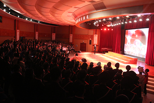 此外,本次典礼还有精彩的风采展表演环节,有声情并茂的歌曲独唱《红旗飘扬》;刚劲有力的武术表演《中华魂》;喜气洋洋,悠扬欢悦的笛子独奏《扬鞭催马运粮忙》;干净利落、训练有素的女子花枪表演;英姿飒爽、强健有力的匕首操表演;激情高昂的男生小合唱《当那天来临》节目,最后,典礼在全场高唱《歌唱祖国》中圆满拉下帷幕。