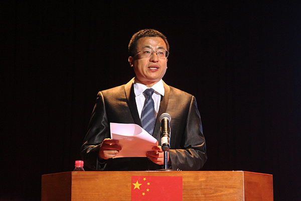 我校保卫处负责人邓伟昌主持典礼