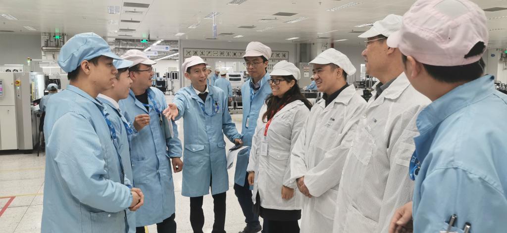 研讨会后,袁光华副校长一行在中兴通讯两位李部长的陪同下参观考察了车间生产情况,并与在岗工作的学徒制班和订单班学生进行了亲切交流,了解了学生在工作和生活上的情况,鼓励学生好好工作,为河职院在中兴通讯竖立良好的品牌形象。学生们都表示在中兴通讯学到了很多东西,这里的师傅非常尽责,毕业以后他们都愿意继续留在中兴通讯工作。