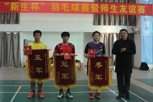 为全面贯彻教育方针,加强我校第二课堂建设,提高学生体质健康水平,促进大学生成长成才。12月10日下午,我校于风雨操场顺利举行新生羽毛球赛闭幕仪式暨师生友谊赛。团委书记陈晓峰,副书记黄志鹏,教职工羽毛球队、各二级学院参赛队伍以及裁判人员均参加了此次活动。