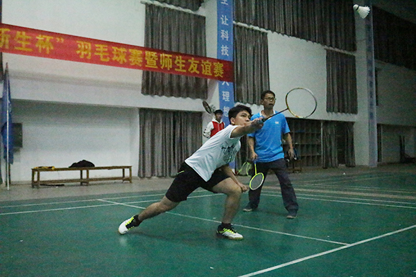 闭幕式后,紧张激烈的师生友谊赛正式开始。比赛过程中教职工与学生斗志昂扬,与队友团结协作,配合默契,为观众展现了较高的羽毛球水平和竞技实力,彰显了我校师生良好的精神面貌和奋勇拼搏的比赛风格。