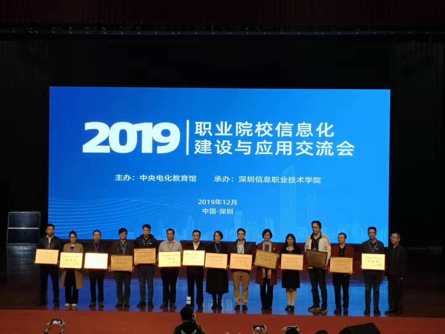 近日,中央电化教育馆组织对第三批职业院校数字校园建设实验校提交的中期建设报告进行了审核,我校顺利通过专家评审。12月20日,由中央电化教育馆主办的2019职业院校信息化建设与应用交流会在深圳信息职业技术学院召开,我校代表参加会议并接受“职业院校数字校园建设实验校”授牌。