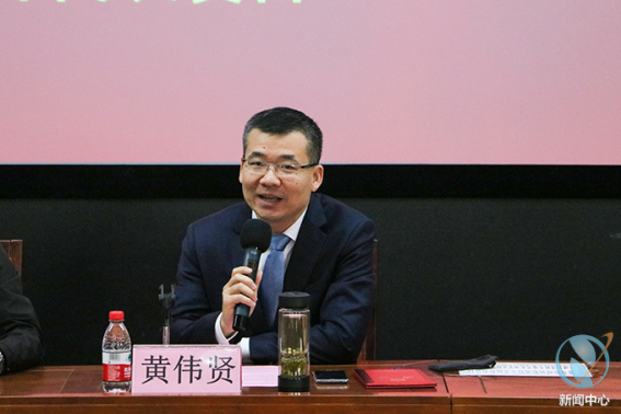 紧接着深职院双创学院黄伟贤副院长作为校外导师代表发言,他通过自己的亲身经历、所见所闻,以通俗易懂的语言,阐述了创新创业教育内涵,并鼓励和支持广大学生参与其中,注重自身的创新创业能力素质培养,作为一名校外导师很乐意为提高我校双创教育水平贡献力量。