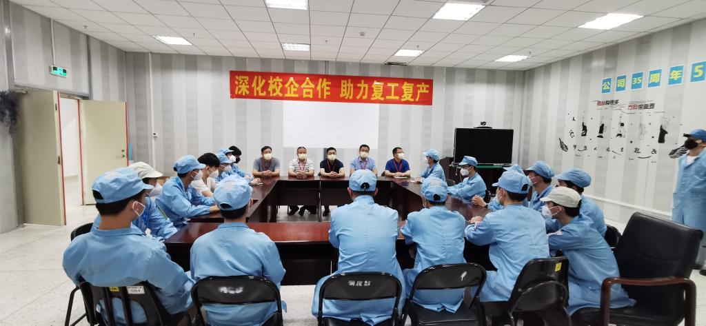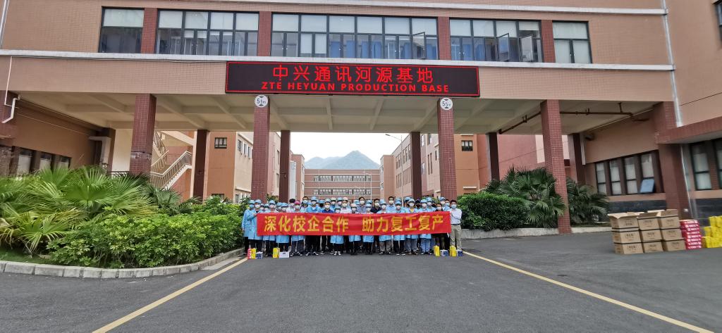 4月30日下午,“中兴通讯&河职院:深化校企合作,助力复工复产”交流研讨活动在中兴通讯河源基地16栋2-1会议室顺利举行。中兴通讯有线及视能生产部李新华部长、人力资源部冯朝阳经理,市团委青年发展部梅志广部长,我校科研处何智聪处长、团委陈晓峰书记、电信学院王富宽院长、周永福副院长、校企办高燕主任及相关人员和实习学生代表参加了本次活动。