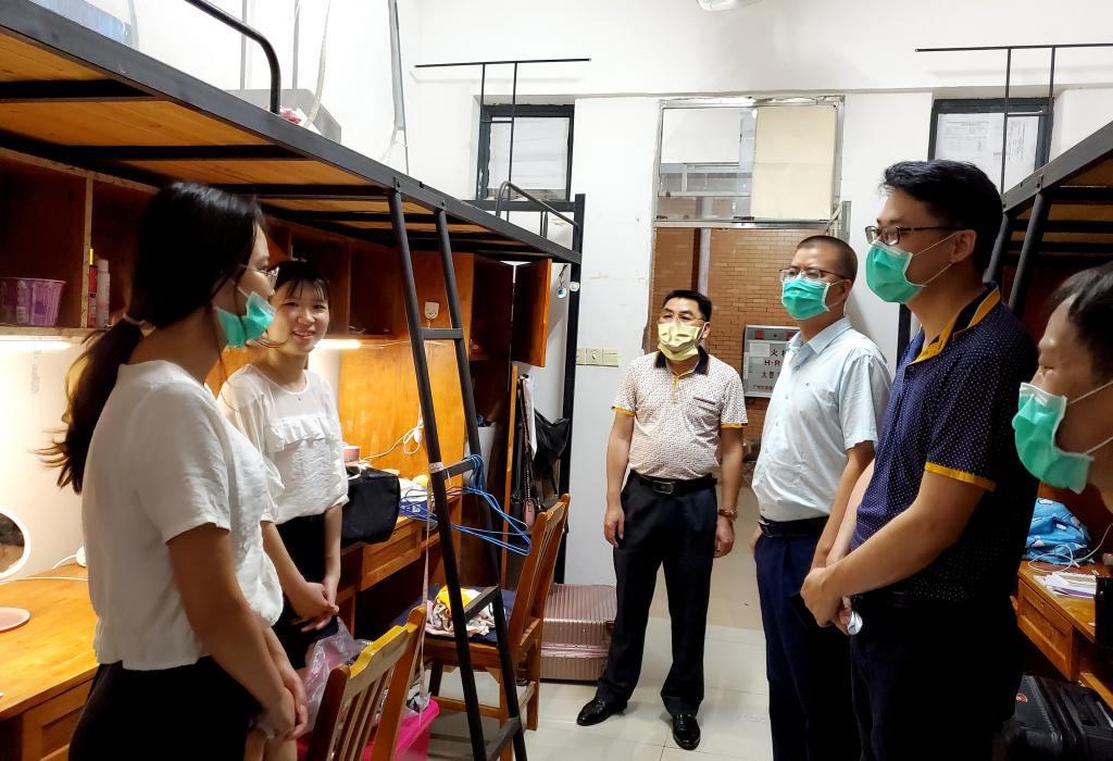 为帮助疫情防控期间返校的毕业班学生尽快适应学校防疫措施流程,了解帮助解决毕业生毕业、就业相关问题或困难,5月19日晚上,学校党委书记韦荣,党委副书记、纪委书记叶国英,副校长赖小景、王小宁和张国勇等分别带队走访了2017级返校的毕业生,了解他们的思想动态、毕业手续办理及就业等情况,为毕业生送来最诚挚的祝福。