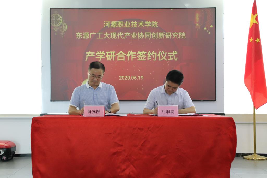 东源研究院是广东工业大学在河源地区创建的一个科技创新服务平台,拥有广工大强大的产业服务体系,汇聚整合国内外高校和科研院所人才和技术等创新资源。我校与东源研究院签订产学研合作协议,并在校企合作和高层次工程技术人才的培育达成合作意向,开展全方位合作,必将极大促进我校职业教育事业与产业的深度融合,有利于提高教师的业务水平、有利于促进地方经济繁荣发展、有利于促进职业教育的健康发展。