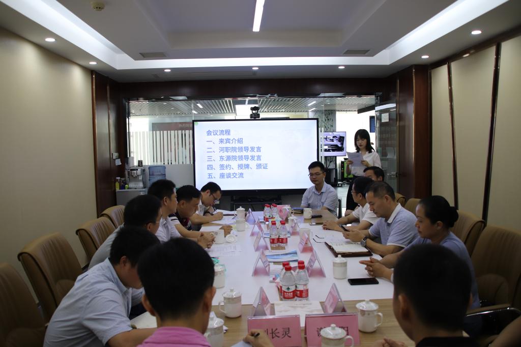 签约仪式时为东源研究院颁发了河职院“创新创业基地基地”牌匾,给东源研究院执行院长胡正发颁发了工业机器人专业校外专业带头人证书。签约仪式后召开了双方的座谈会,东源研究院执行院长胡正发研究员指出,河职院为省示范性高等职业院校,在科学研究、技能大赛、创新产教融合等方面都取得不错的成绩,作为本地的高校更应该在“融湾”、“融深”、“两个河源”建设的重要时期,在人才培养、服务地方区域经济发展中担起重要责任。