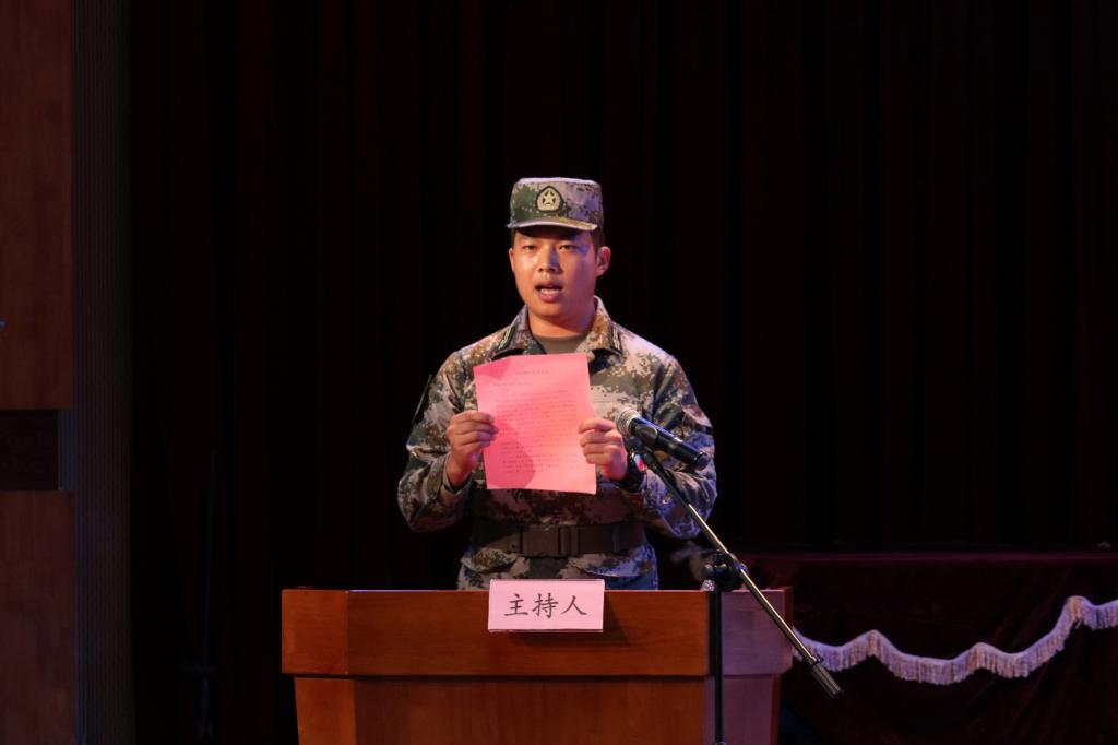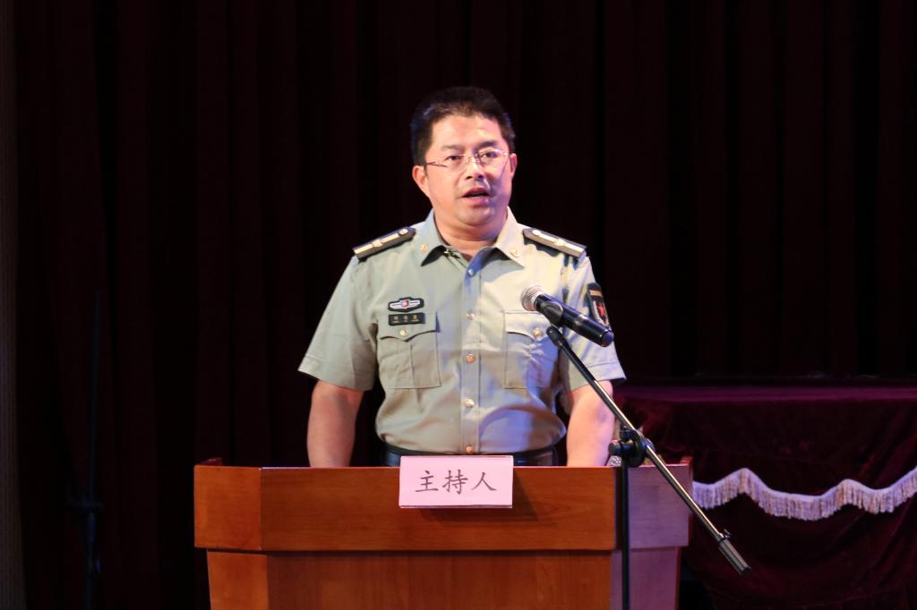 学校武装部李郁声同志宣读军训教官队干部任职命令