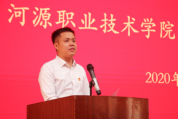 在开幕式上,市学联主席李璐发表致词,致辞中,李璐对我校学生会所做工作及所取得成绩给予充分肯定。她强调,学联学生会组织改革对高校学生会是要求也是机遇,希望河职院学生会能以此为新起点,明确新任务,开创新局面。随后,陈晓峰书记上台讲话,他表示广大河职学子正处于人生最精彩、最富创造力的时期,也正值学校全面推动高质量发展的重要契机。他肯定了我校学生在抗击疫情中体现出的“河职担当”,同时也对广大学生代表提出三点希望,希望大家加强思想引领,坚定理想信念;聚焦职能定位,优化组织体系;深化服务内涵,发挥榜样力量。