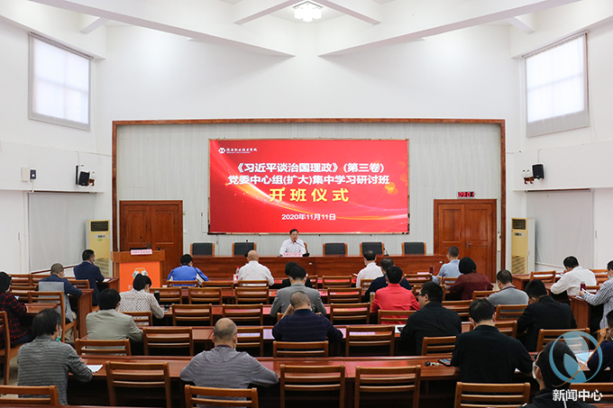 11月11日,为贯彻落实《中央宣传部、中央组织部关于认真组织学习(习近平谈治国理政)第三卷的通知》及省委、市委相关通知要求,我校于行政楼C108举行《习近平谈治国理政》第三卷党委中心组(扩大)集中学习研讨班开班仪式。学校党委中心组成员、各部门主要负责人、各二级学院副院长、各专业主任参加此次开班仪式。本次开班仪式由党委书记韦荣主持。