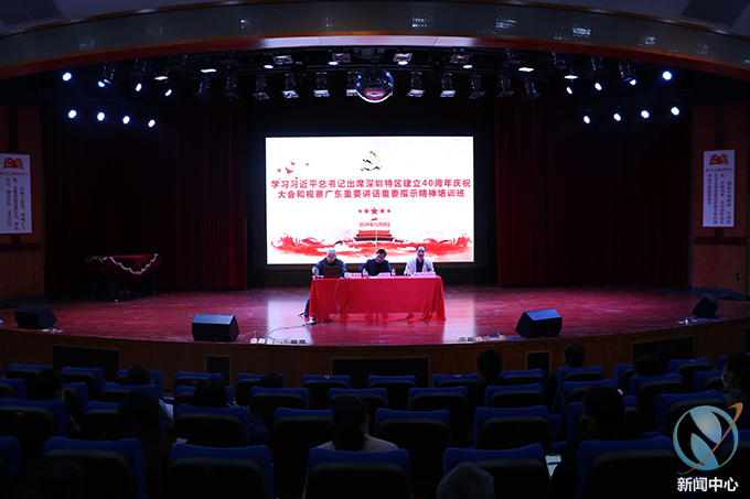 为了深入学习贯彻习近平总书记出席深圳经济特区建立40周年庆祝大会和视察广东重要讲话、重要指示精神,12月8日,我校于艺术楼演播厅开展“学习习近平总书记出席深圳特区建立40周年庆祝大会和视察广东重要讲话重要指示精神”培训班。河源市人力资源和社会保障局副局长罗源才、广东省委党校原副校长苟志效、我校副校长赖小景、市人力资源和社会保障局相关人员、我校各处室、院部等相关人员参加了此次会议。本次会议由赖小景副校长主持。