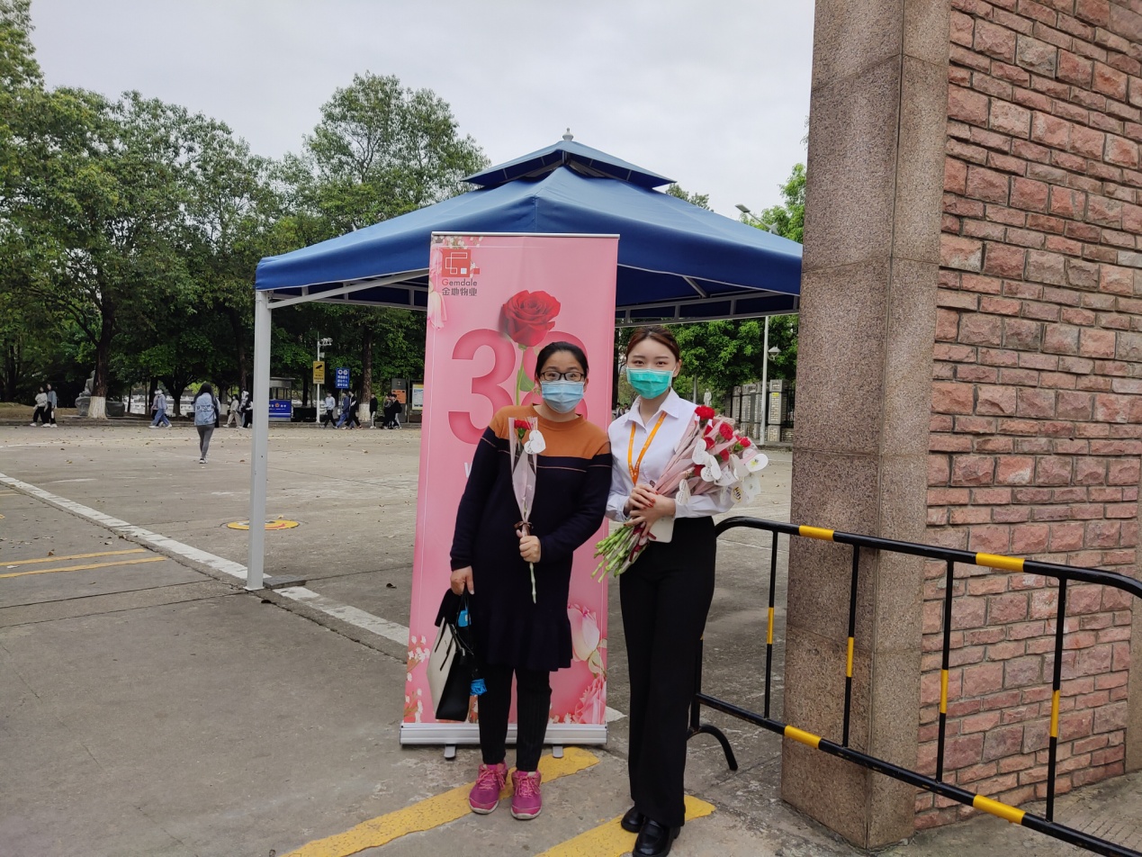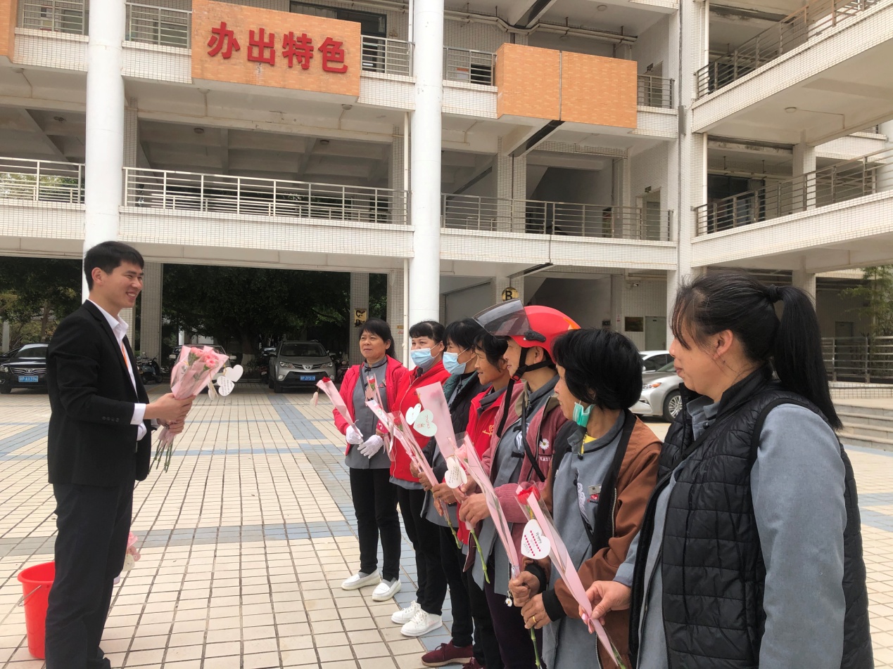阳春三月,万物复苏,在“三八”妇女节来临之际,为向全校女同胞们送上温馨的祝福和深切的关爱,同时,让女同胞们感受来自学校物业的关怀和问候,金地物业易游app入口站官网管理服务中心举行了“3.8鲜花赠女神”活动。